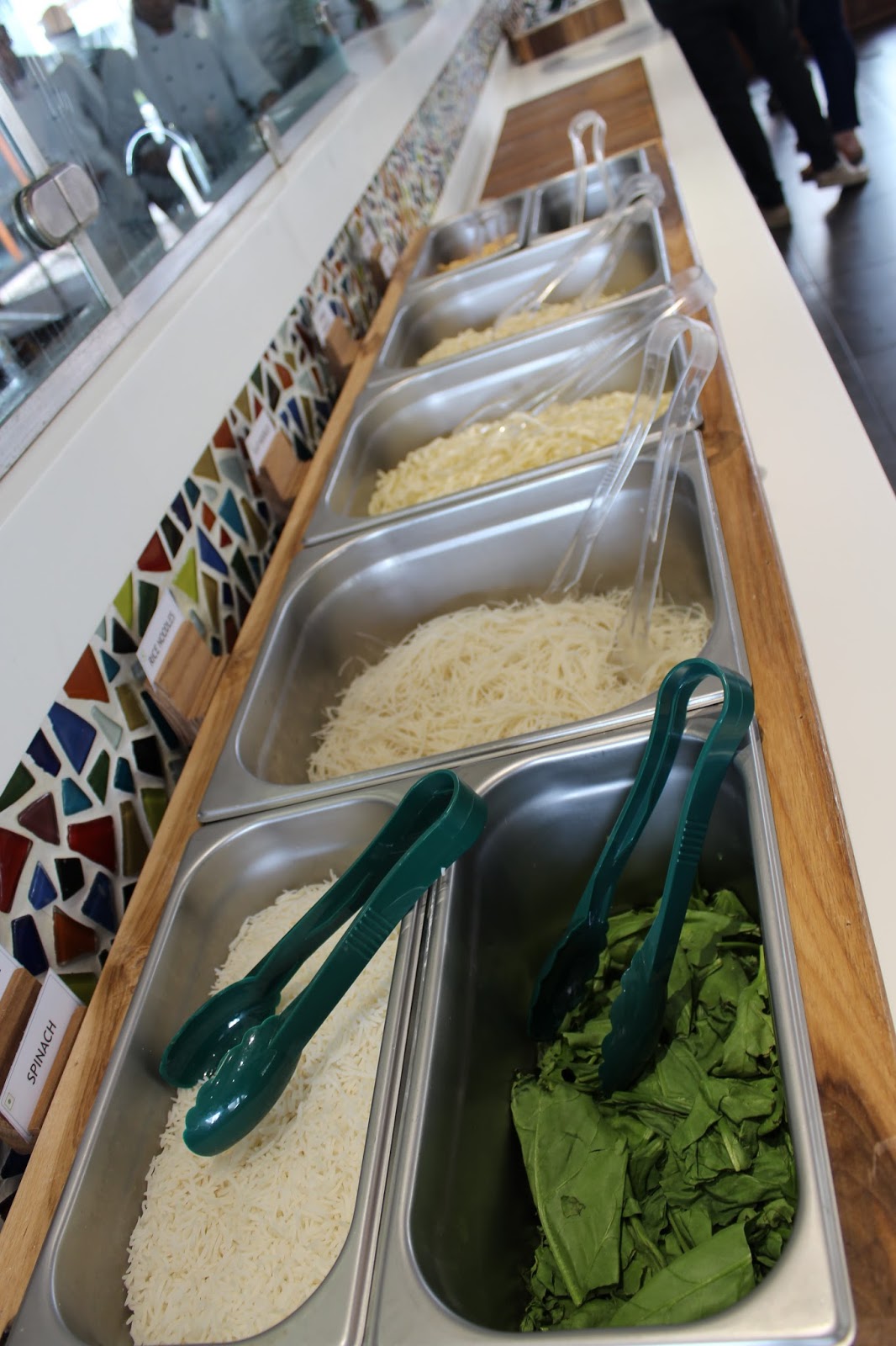 veggies and pass the bowl over the chef at the kitchen counter. You can