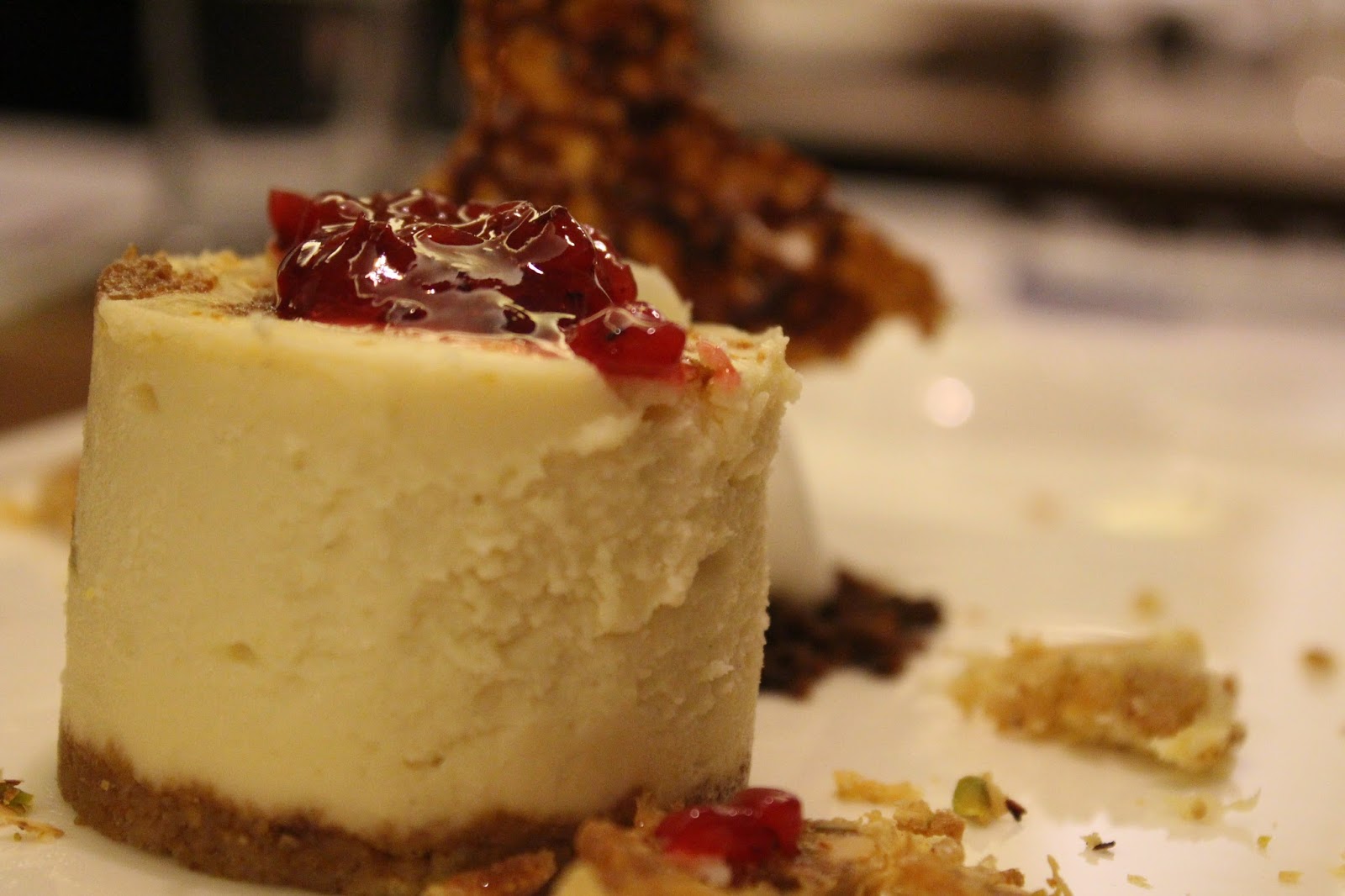 topped with strawberry compote has a minor base of crumbly Mohanthal, served