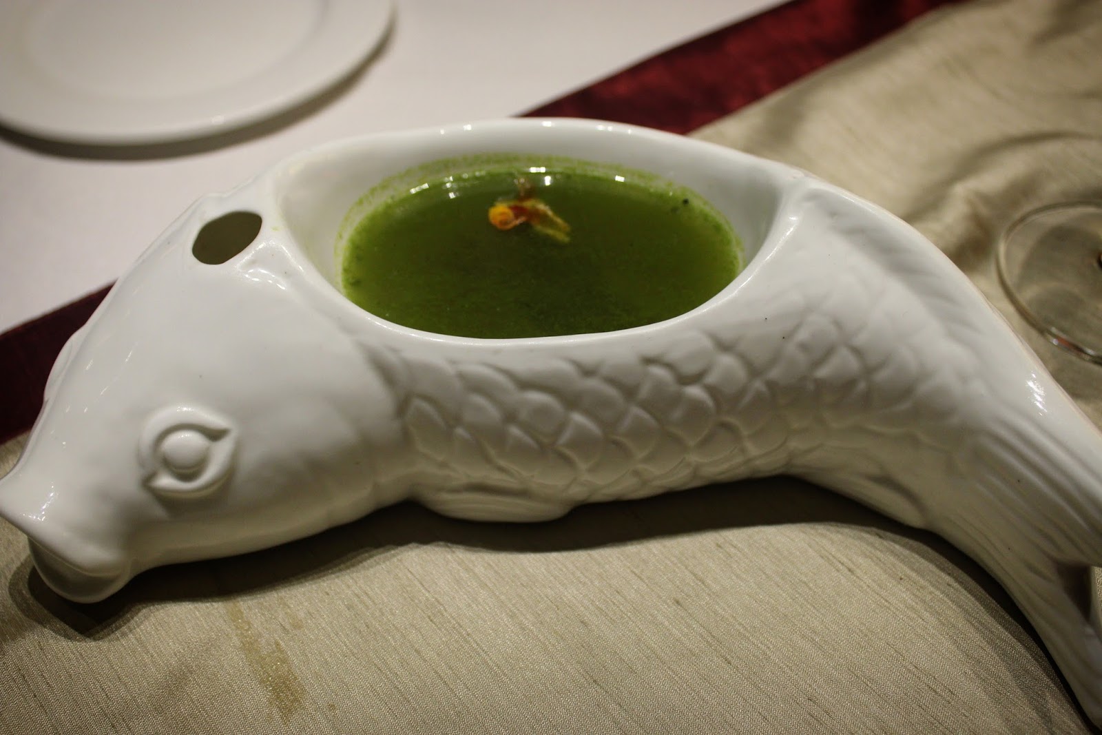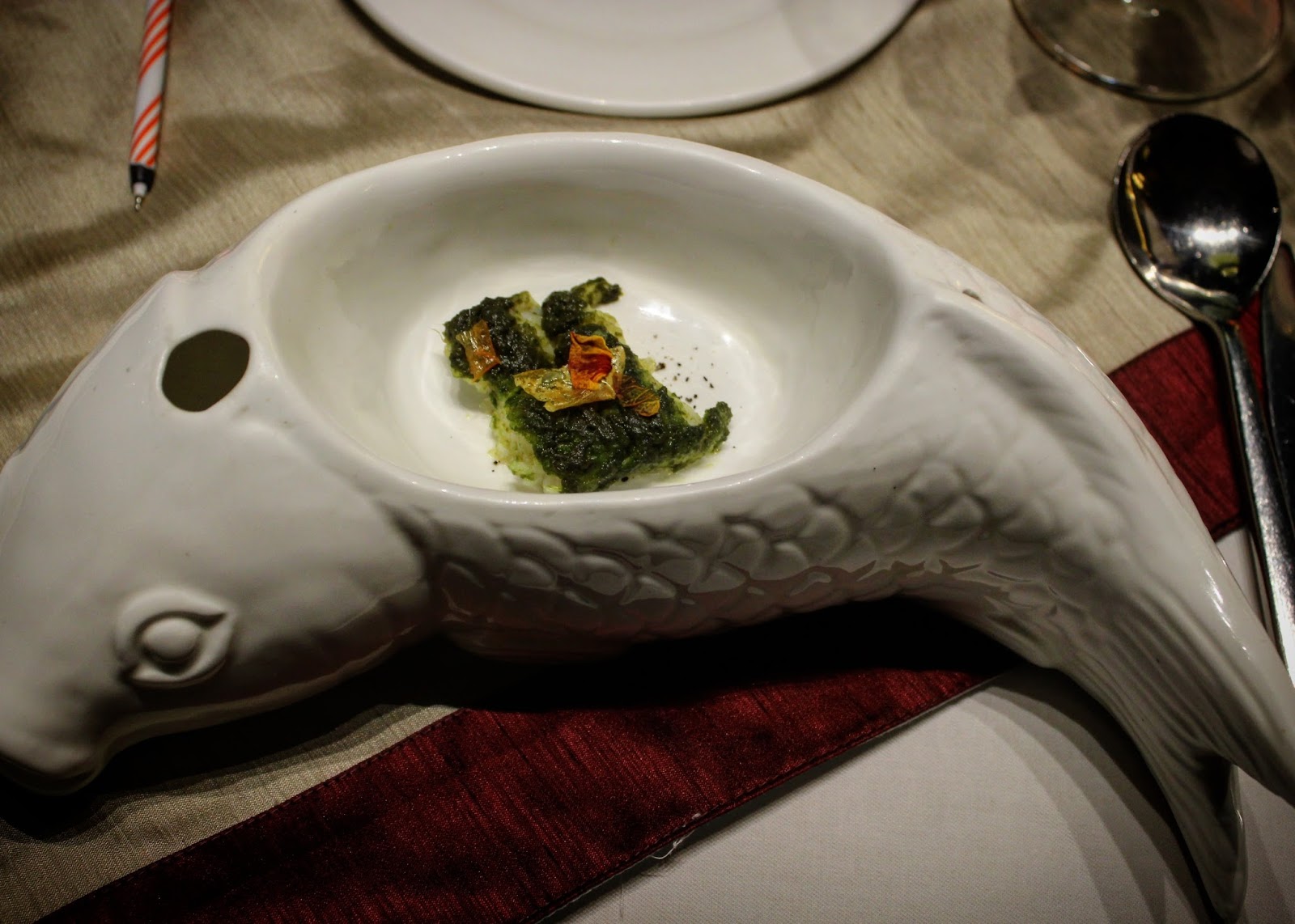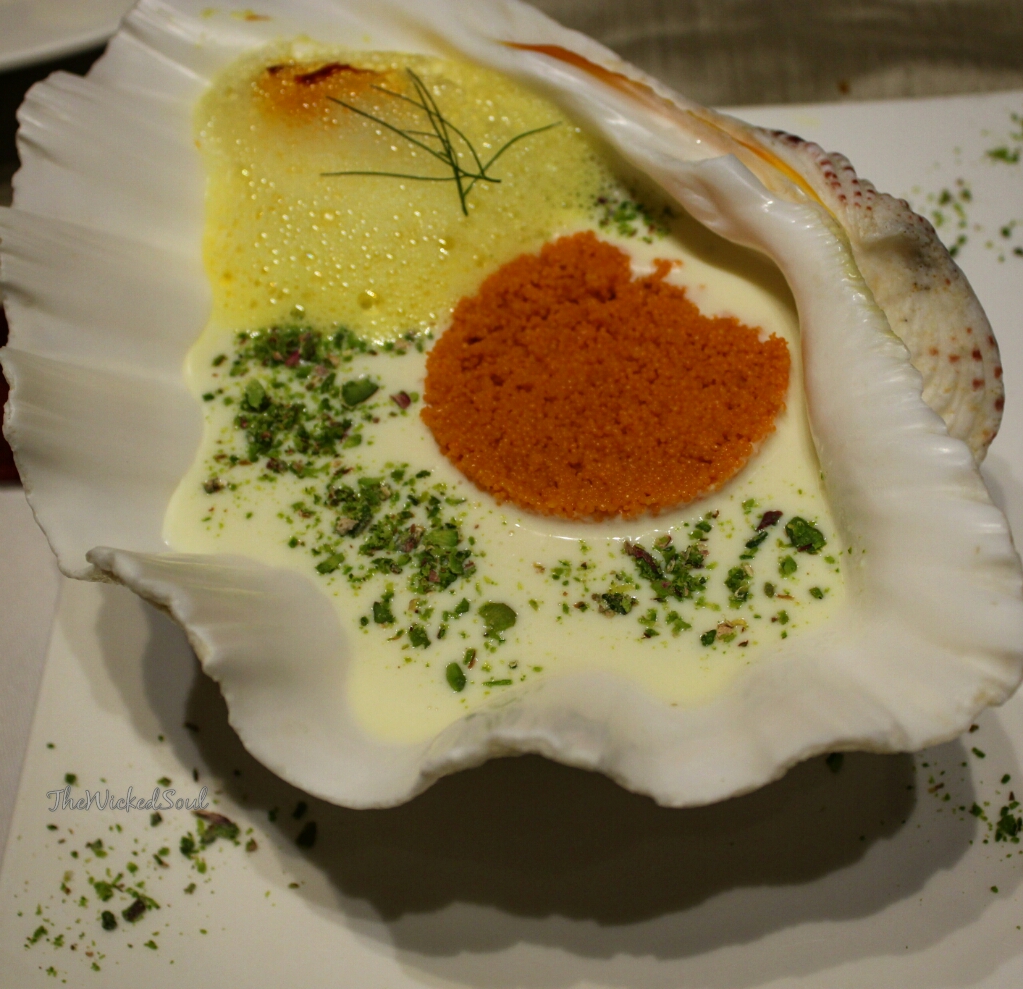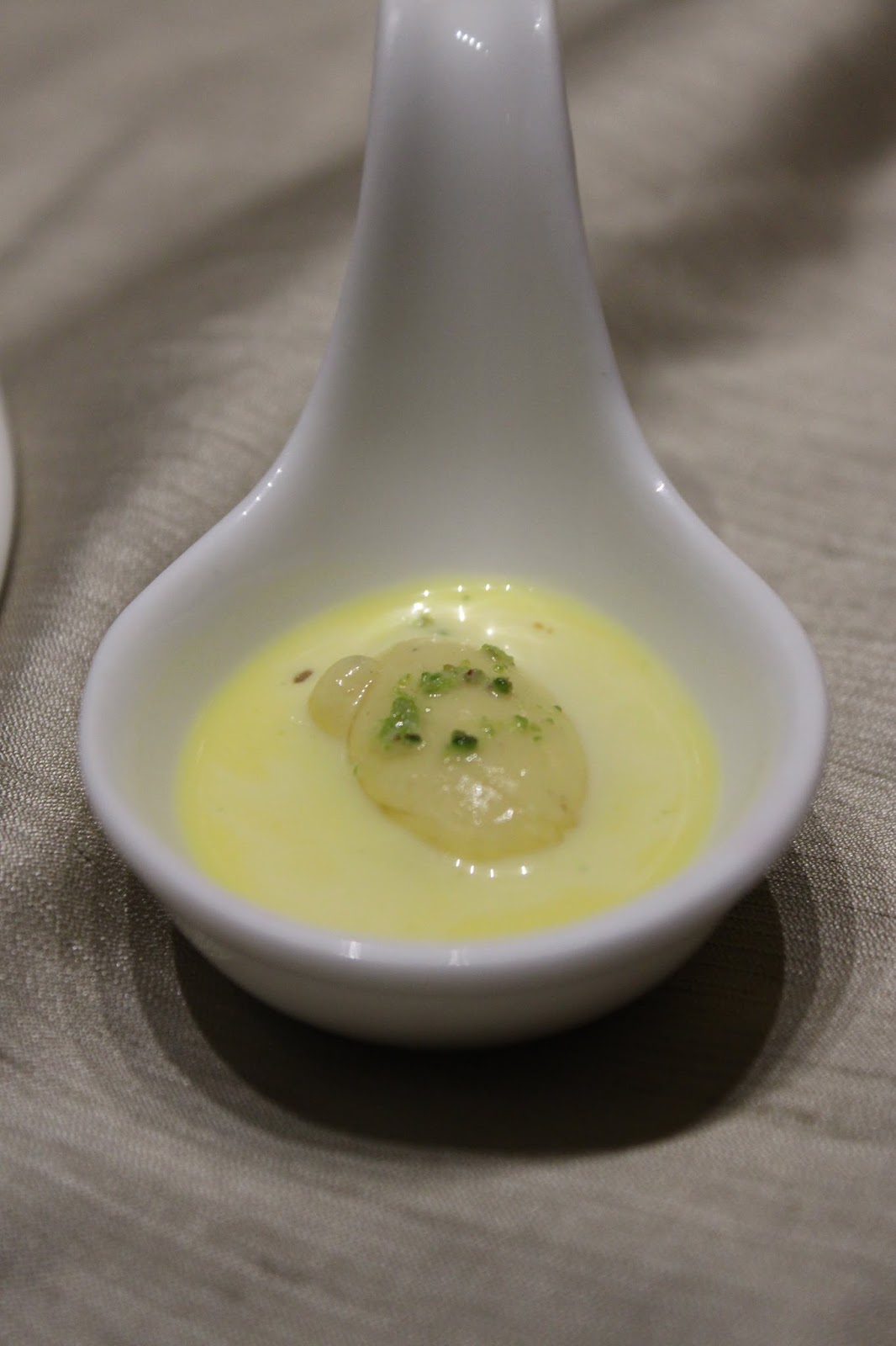 We set off to a mysterious beginning. An oval shaped sphere served on a soup spoon