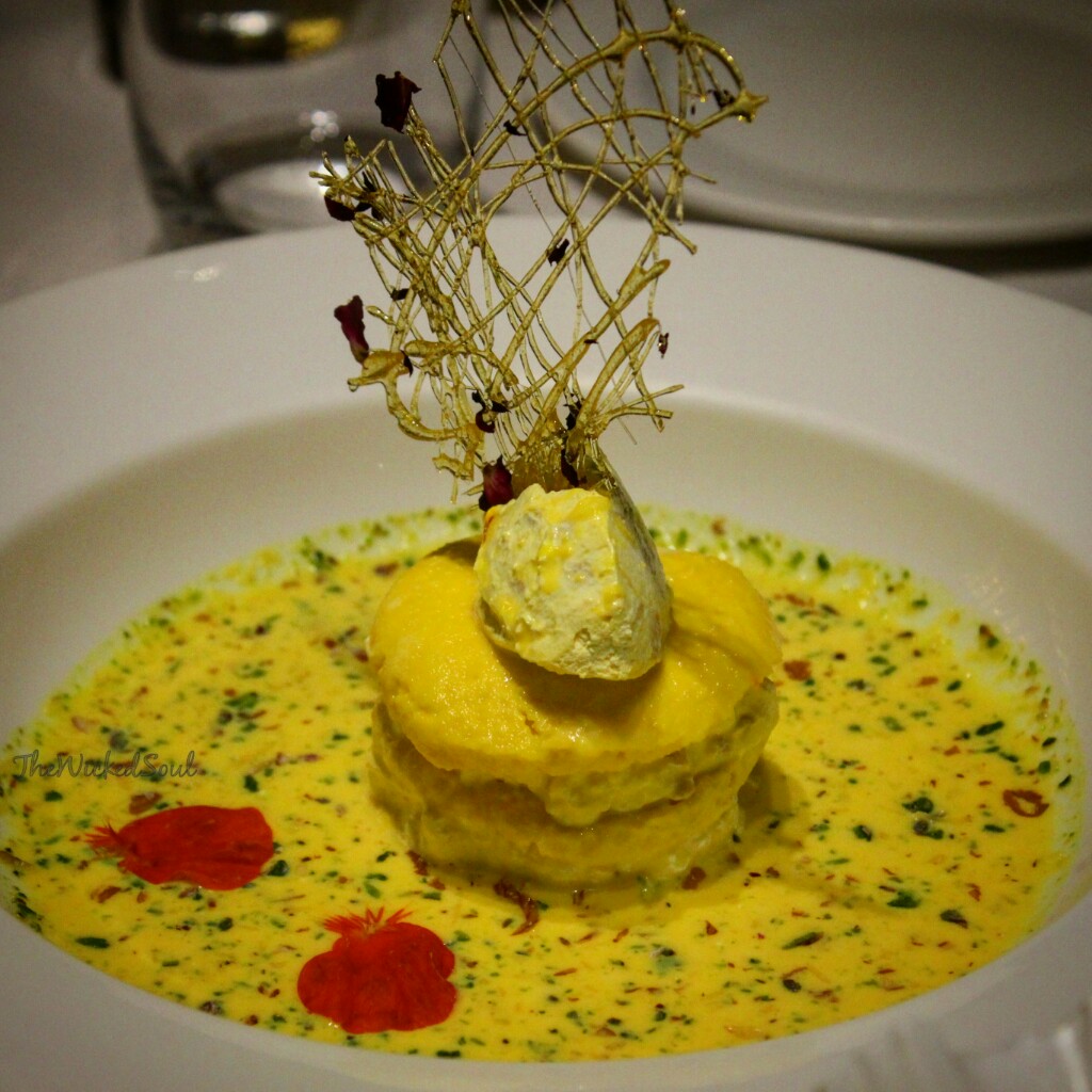 in Ras (saffron milk). A carefully erected rose caramel net completes the look
