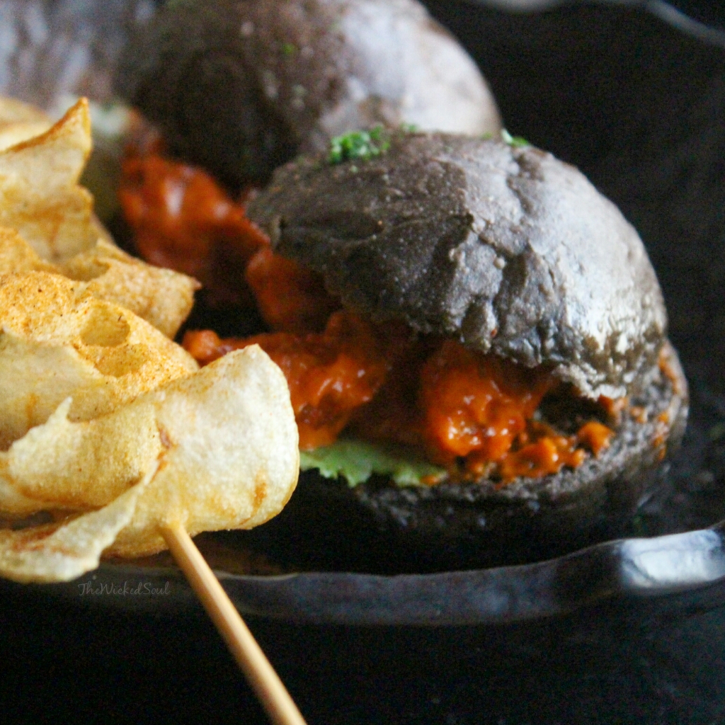 mouths among us called for PRAWN DYNAMITE SLIDER: The black buns burger is an