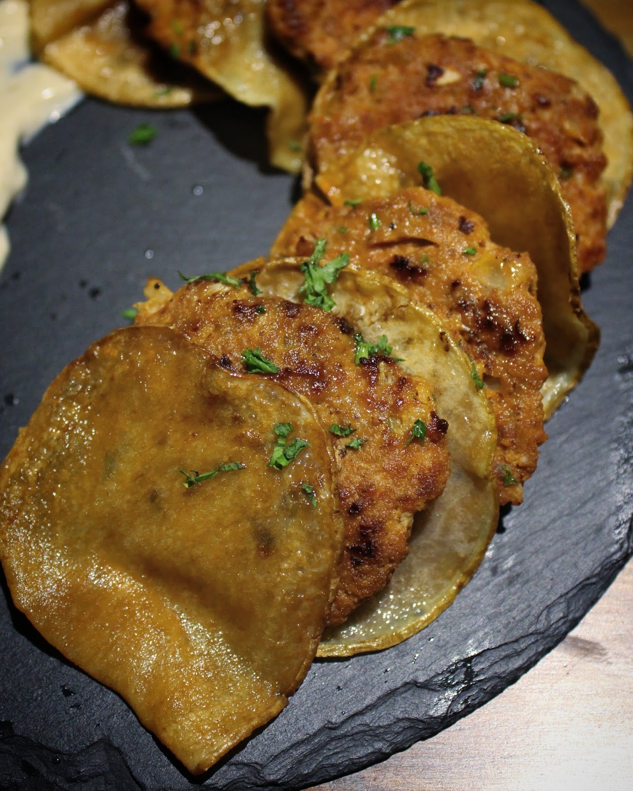 These were served with thin potato crispy and thecha mayo.