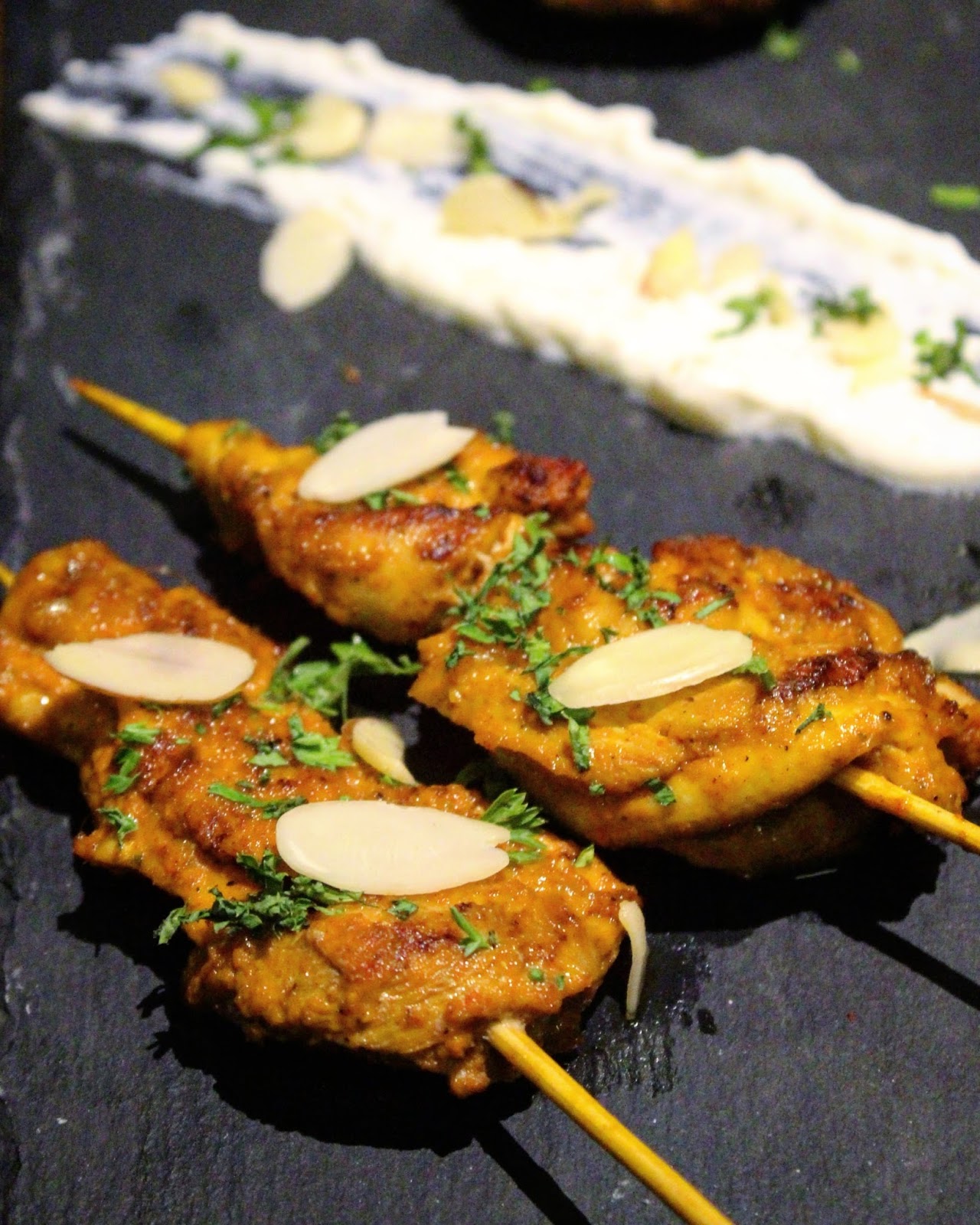 topped with almond slivers and dip. So juicy and perfectly cooked, this one