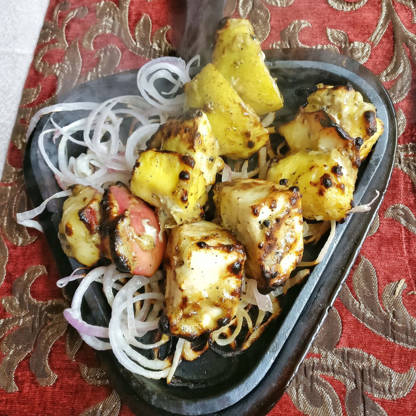 Mavoha Tanur: Assorted fruits are marinated with sumac powder & grilled to perfection with a smoky coating holding intact its juicy fruity flavors. The sweet fruity flavors of apple, pineapple, guava & figs packed a deadly punch along with the sourness of sumac.